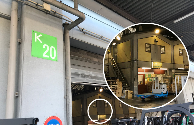 弊社は大田市場青果棟にございます。K20を目印にお越しください。階段を上がった2階に執務室がございます。
